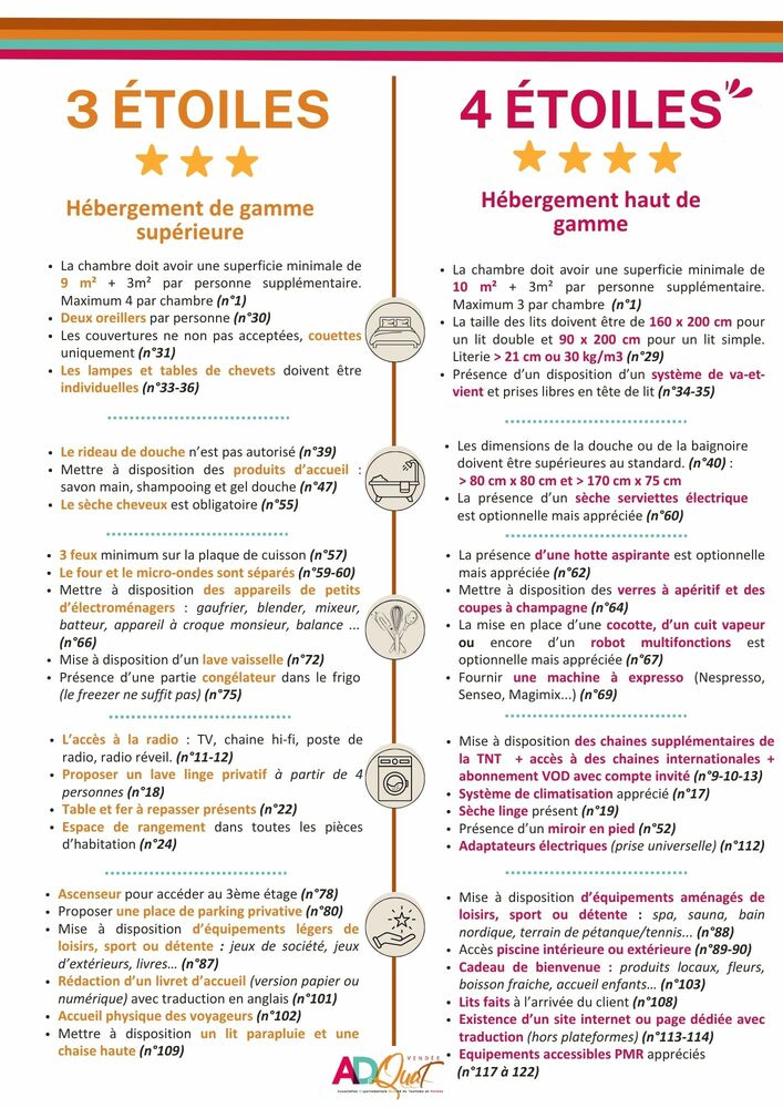 ❓ Quelle est la différence entre un meublé de tourisme 3 étoiles et 4 étoiles ?